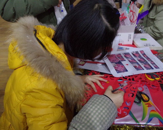 活动伊始,由吉他社带来的精彩节目快速活跃了现场氛围,同学们在悠扬的旋律中纷纷加入活动中来。在“智力比拼”活动区,“猜灯谜”这一充满年味的传统游戏吸引了众多同学的参与,大家聚集在五彩缤纷的彩灯下研究谜面,不时爆发出阵阵笑声;“对春联”的比拼中不少同学凭借深厚的语文功底赢得了热烈掌声,“正话反说”“巧舌如簧”等小游戏也颇受欢迎。“心灵手巧”活动区为同学们提供了捏面人、剪窗花和木工手艺等传统工艺体验活动,在动手参与中加深对中华传统工艺的了解和学习。活动丰富,美食同样不能辜负,在“口齿留香”活动区由中国海洋大学“勉行”义工队和食品学院学生会营养与健康服务部提供的冰淇淋、寿司、白桃乌龙茶和雪花酥等美食受到同学们的热烈欢迎,据了解这些食品均由食品学院学生自己制作,实现了将专业知识和实践操作的有机融合。