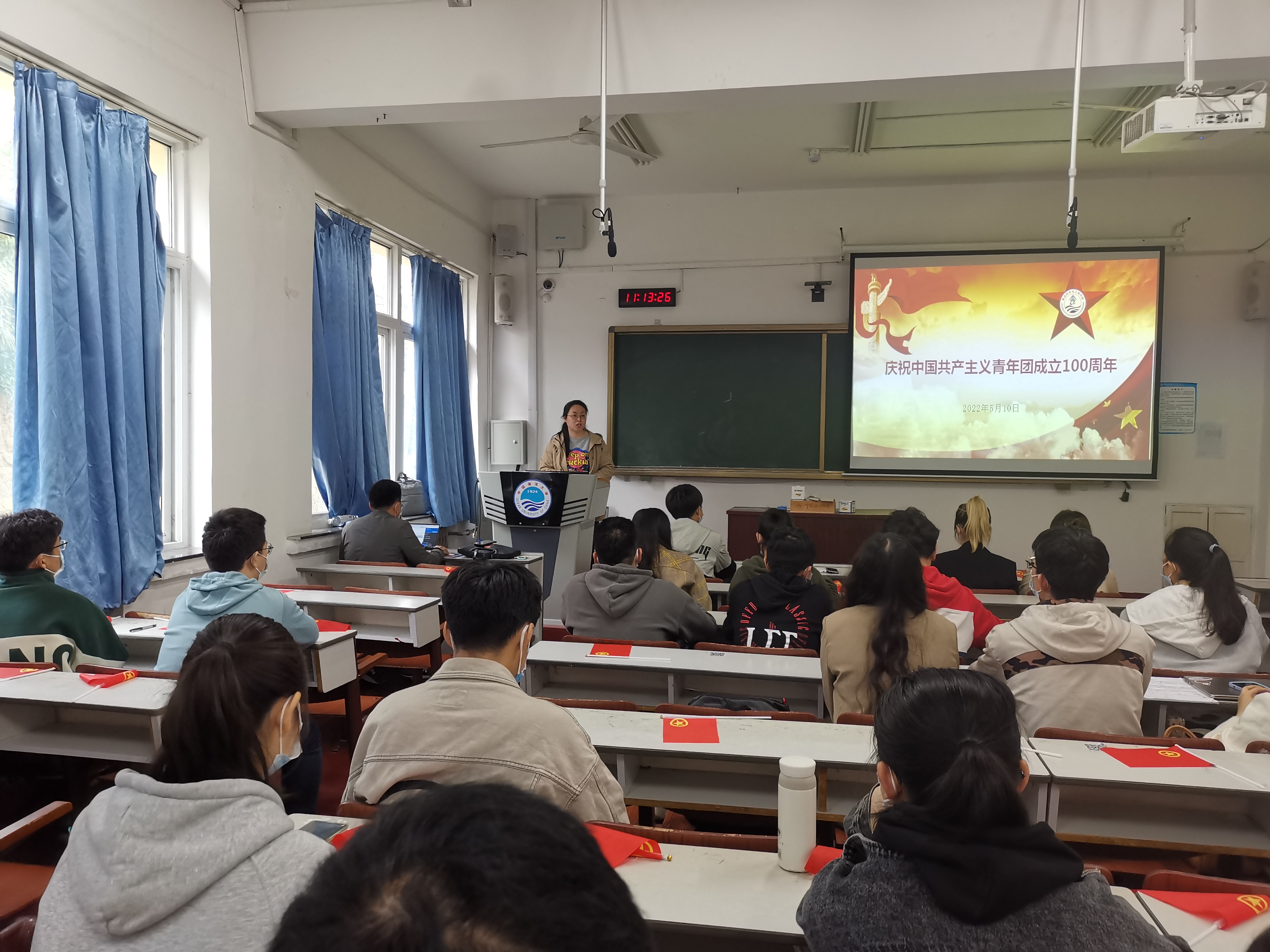 会议最后,师生齐唱团歌《光荣啊,中国共青团》,“我们是五月的花海,用青春拥抱时代。我们是初升的太阳,用生命点燃未来”,铿锵有力的声音表达了每个人的使命和担当。