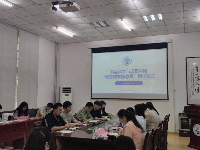 本站讯 食品科学与工程学院2022届深造大使、教育教学信息员聘任仪式于6月10日下午在鱼山校区六二楼104顺利举行。出席此次聘任仪式的有学院党委书记辛华龙、学院党委副书记程振明、学院副院长李振兴、学院副院长徐宋娟、学院副院长常耀光、学院团委书记李想以及食品学院24名深造大使、17名教育教学信息员,程振明主持聘任仪式。