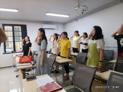 张雪宁同志:通过本次的五老采访活动,与老党员面对面的交流,我们感受到了他们听党指挥,保卫祖国的坚定信念,以及讲实干,肯吃苦,甘愿奉献的工作态度,很是受益匪浅。最后,党支部书记魏倩岚同志带领全体党员面向党旗,庄严宣誓,重温入党誓词,感受初心与使命。