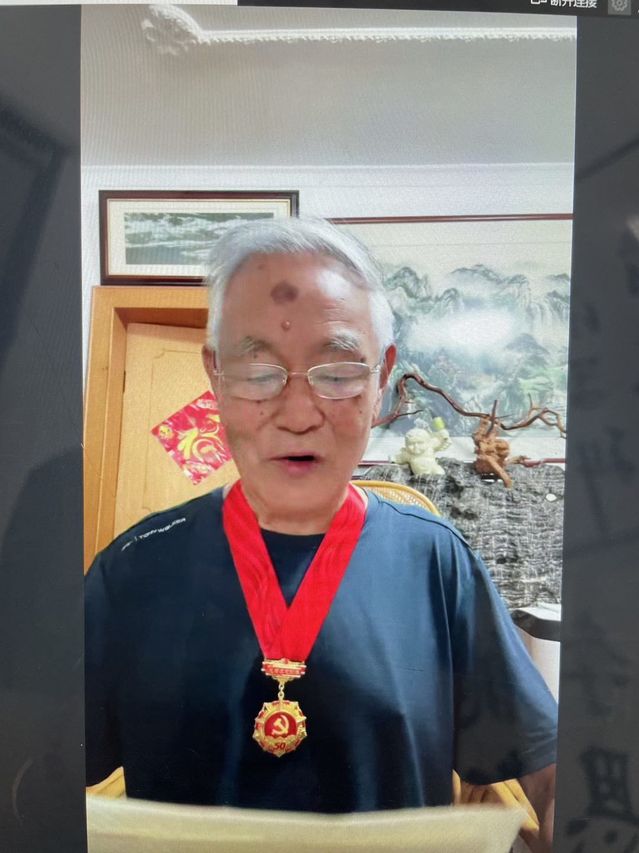 会议伊始,党支部书记岳子琳简要介绍了本次主题党日活动邀请的81岁高龄老党员岳颜喜同志,希望在这个重要的日子中,通过同志们与老党员的深度交流进行思想提升和学习。会议主要就“与老党员对话”、“老党员领誓重温入党誓词”和“以嘉兴红船为起点回顾百年党史”三方面内容展开。老党员岳颜喜同志在讲述他的入党故事时提到:在1958年底,当得知征兵人员进入淄博一中的时候便积极报名,成为了一名光荣的中国人民解放军战士,在部队上努力学习,勤奋工作,圆满完成各项战备任务,多次受到表扬奖励,并于1963年2月3日光荣地加入了中国共产党。