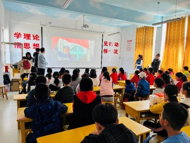 开幕仪式上,生源地为沂水县院东头镇的中国海洋大学食品科学与工程学院张千禧(2022级食品工程硕士)作为“食代先锋”科普团代表进行励志演讲,通过讲述自身求学经历来鼓励小朋友们好好学习,勇敢奔赴美好未来。团队队长阚若彤(2021级食品科学与工程硕士)为小朋友们播放了中国海洋大学宣传片《蓝色华章》并简要介绍了海大的基本情况,展现在视频中的美丽校园和大学生活令在场小朋友们充满了憧憬与向往。
