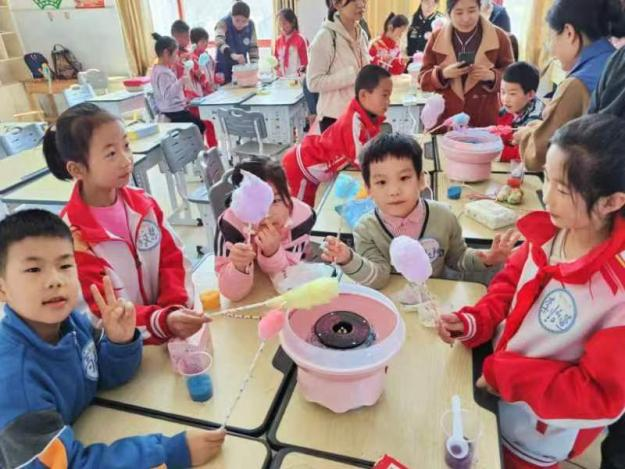 实践过程中,小朋友们热情高涨,棉花糖的香甜伴随欢声笑语溢满整个课堂。制作完成后,小朋友们迫不及待地在镜头面前展示自己的劳动成果,品尝亲手制作的甜蜜!