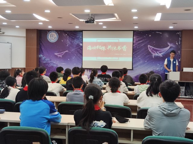6月1日下午,中国海洋大学“勉行”义工队组织“食代先锋”科普宣讲团志愿者一行走进青岛八大峡小学开展“海峡相依,共沐书香”六一特别活动,共30余名小学生参与到本活动中。