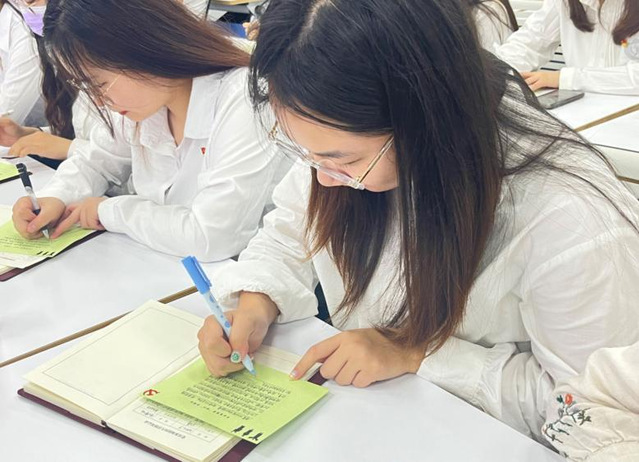 又是一年毕业季,四年前怀揣青春之志的本科生同学们即将收拾行囊离开熟悉的校园,踏上一段新的征程。博士生党员与毕业生党员共同探讨了求职选择、科研困惑等方面的问题。随后,毕业生党员们现场写下“出征承诺书”,承诺无论未来在哪或是去哪,都牢记身份使命,不忘初心誓言,发挥好党员模范带头作用,以实际行动践行初心。