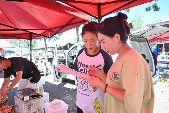为了更深入地了解居民对食品安全和饮食文化的关注情况,实践团成员们还深入到集市里,通过采访的方式进行相关调研,采访内容涵盖了居民对食品安全的认知程度、对饮食文化的了解情况以及对食品安全监管的意见和建议等。居民们积极配合,纷纷表达了自己对食品安全和饮食文化的关注和期望。