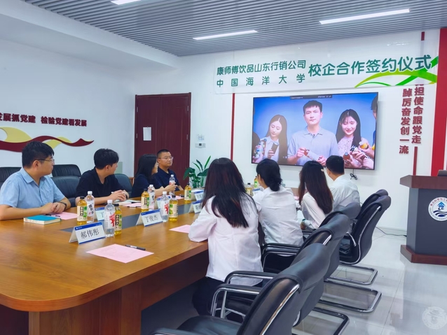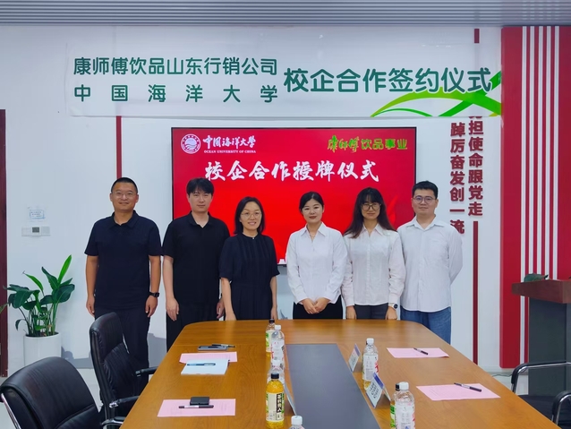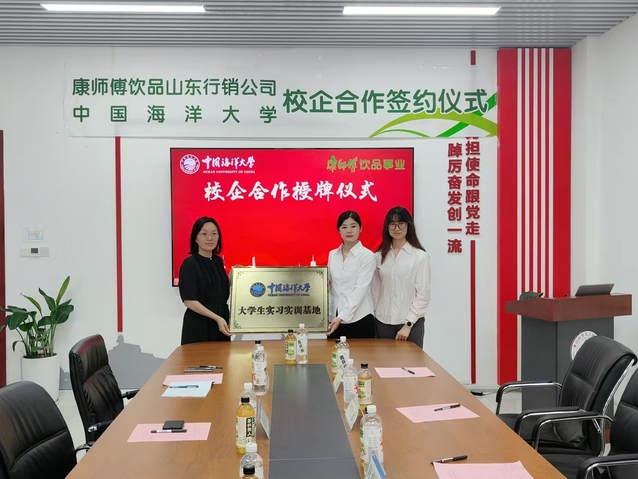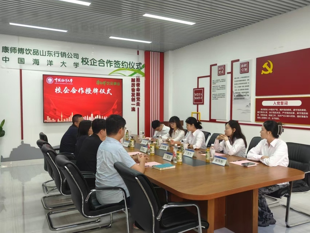 本站讯 为进一步推动毕业生高质量就业,提高人才培养质量,9月9日, 中国海洋大学食品科学与工程学院与康师傅饮品共建大学生实习实训基地授牌仪式在中国海洋大学西海岸校区顺利举行。康师傅山东行销公司人资处长陈维娜,山东供应链人资处长李思思,山东行销公司人资企业专员王山虎,山东行销公司青岛人资丁俊杰、郝伟彤;学院党委副书记、副院长程振明,团委书记朱富江,辅导员李臣、丁晨阳出席授牌仪式。