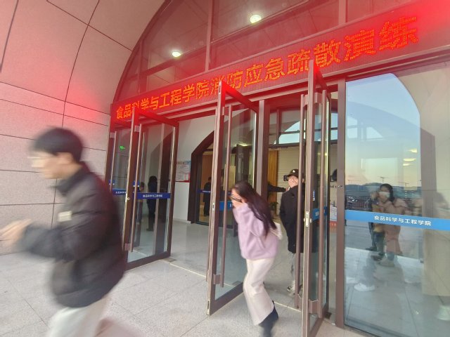 本站讯 为进一步做好食品学院消防安全工作,提高火灾防控能力,普及火灾防范常识,增强师生的消防安全意识,11月28日下午,食品科学与工程学院联合学校党委保卫部、保卫处组织开展消防安全培训暨火灾应急疏散演练活动。食品科学与工程学院党委书记于德华参加活动,副院长徐宋娟主持演练,学院各科研团队老师、全体研究生近千人参加演练。
