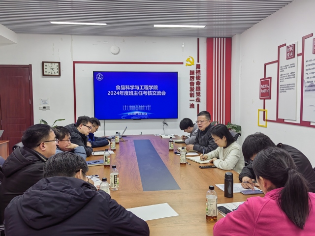 本站讯  为进一步加强班主任队伍建设凝聚学生工作队伍的育人合力,1230日,食品科学与工程学院2024年度班主任考核暨工作总结交流会在食工楼202会议室召开。学院党委书记于德华,党委副书记、副院长程振明,全体班主任、辅导员参会。