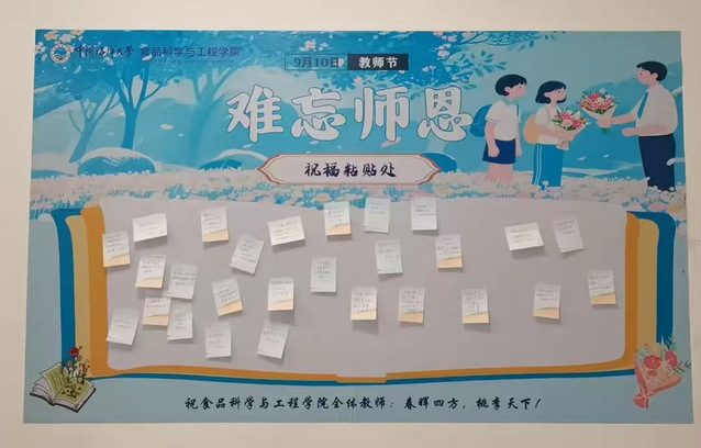 除此之外,食品科学与工程学院的同学们也自发行动。他们以班级、实验室为单位,在这个特别的日子里,向老师们传递最质朴的祝福。师恩如灯,照亮求学前路;师恩似泉,滋养学子心田。此刻的美好瞬间被永久定格,成为师生心中难以忘怀的珍贵回忆。