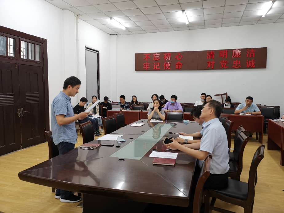202062316点,食品科学与工程学院教师第一党支部委员会换届大会在六二楼104会议室举行。学院党委副书记程振明参加大会,教师第二党支部徐宋娟书记、鞠磊、朱尚清老师参加会议;教师第一党支部共有党员22人,到会19人,符合换届选举要求。会议由食品科学与工程学院教师第一党支部副书记孙建安主持。