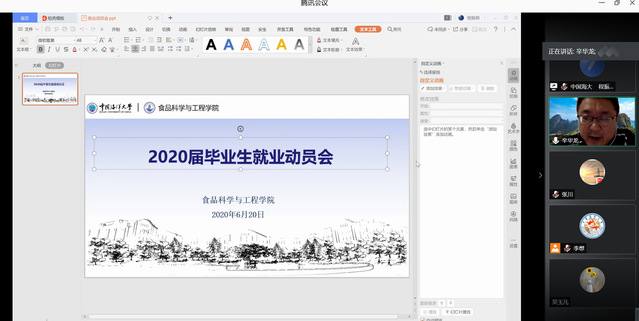 620日晚19点,食品科学与工程学院2020届毕业生就业推进会采用线上的形式召开。会议由党委副书记、副院长程振明主持,学院党委书记辛华龙老师,教师李钰金以及部分2020届毕业生参加会议。