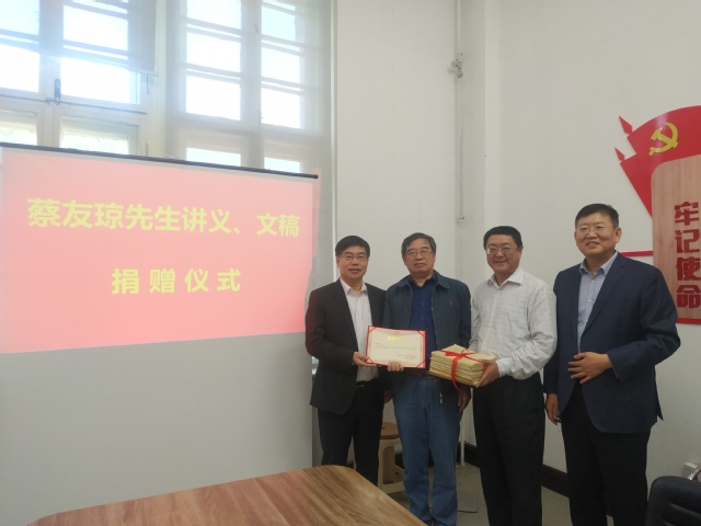 辛华龙表示,蔡友琼校友将珍藏多年的文稿、讲义捐赠给学院,我们深表感激,目前学院正在大力推进院史编写工作,这些学院早期的文稿资料及物品,正是历史和时代的见证和生动写照。
