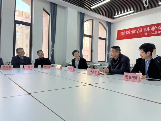 本站讯 2月20日,明月五彩产业文旅集团总裁徐玉强一行来到食品科学与工程学院调研,学院党委书记辛华龙、党委副书记程振明、副院长毛相朝、副院长徐宋娟、副院长李振兴、山东省海洋食品工程技术研究中心副主任王鹏参加座谈。