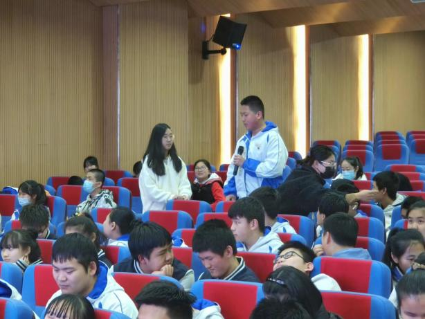 宣讲伊始,主讲人王柯力向青岛市盲校师生介绍了中国海洋大学“勉行”义工队和相关志愿服务项目。随后,她结合“世界卫生日”的由来、生活中的卫生常识及中国居民膳食指南(2022) 为同学们进行食育科普。在互动环节中多名同学积极回答问题,准确地复述了主讲人讲授的知识点,现场氛围热烈。