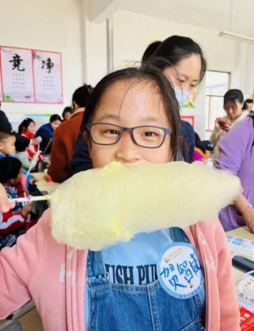 实践过程中,小朋友们热情高涨,棉花糖的香甜伴随欢声笑语溢满整个课堂。制作完成后,小朋友们迫不及待地在镜头面前展示自己的劳动成果,品尝亲手制作的甜蜜!