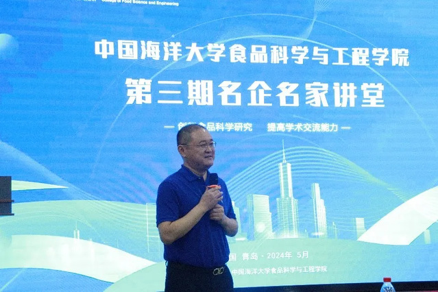 本站讯 5月31日下午,中国海洋大学食品科学与工程学院第三期名企名家讲堂在食工楼B01学术报告厅顺利举办。青岛鑫复盛集团有限公司总经理、党总支书记,青岛市餐饮行业协会执行会长杨仕真应邀出席并作专题报告,食品科学与工程学院党委副书记、副院长程振明,副院长赵元晖及学院师生代表参加本次名家讲坛。