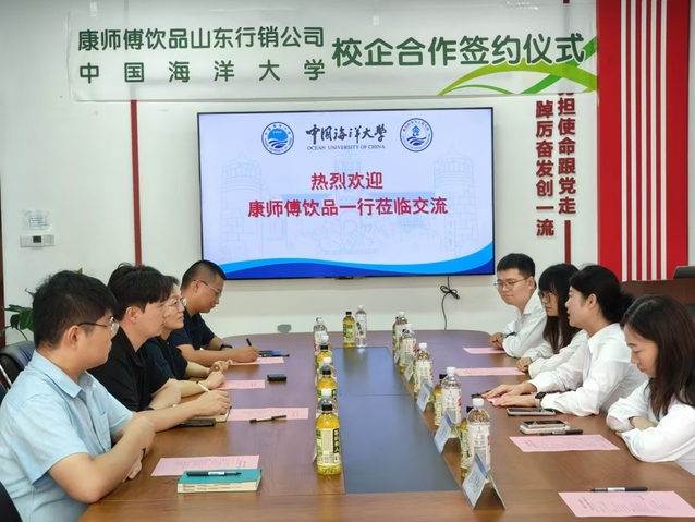 本站讯 为进一步推动毕业生高质量就业,提高人才培养质量,9月9日, 中国海洋大学食品科学与工程学院与康师傅饮品共建大学生实习实训基地授牌仪式在中国海洋大学西海岸校区顺利举行。康师傅山东行销公司人资处长陈维娜,山东供应链人资处长李思思,山东行销公司人资企业专员王山虎,山东行销公司青岛人资丁俊杰、郝伟彤;学院党委副书记、副院长程振明,团委书记朱富江,辅导员李臣、丁晨阳出席授牌仪式。